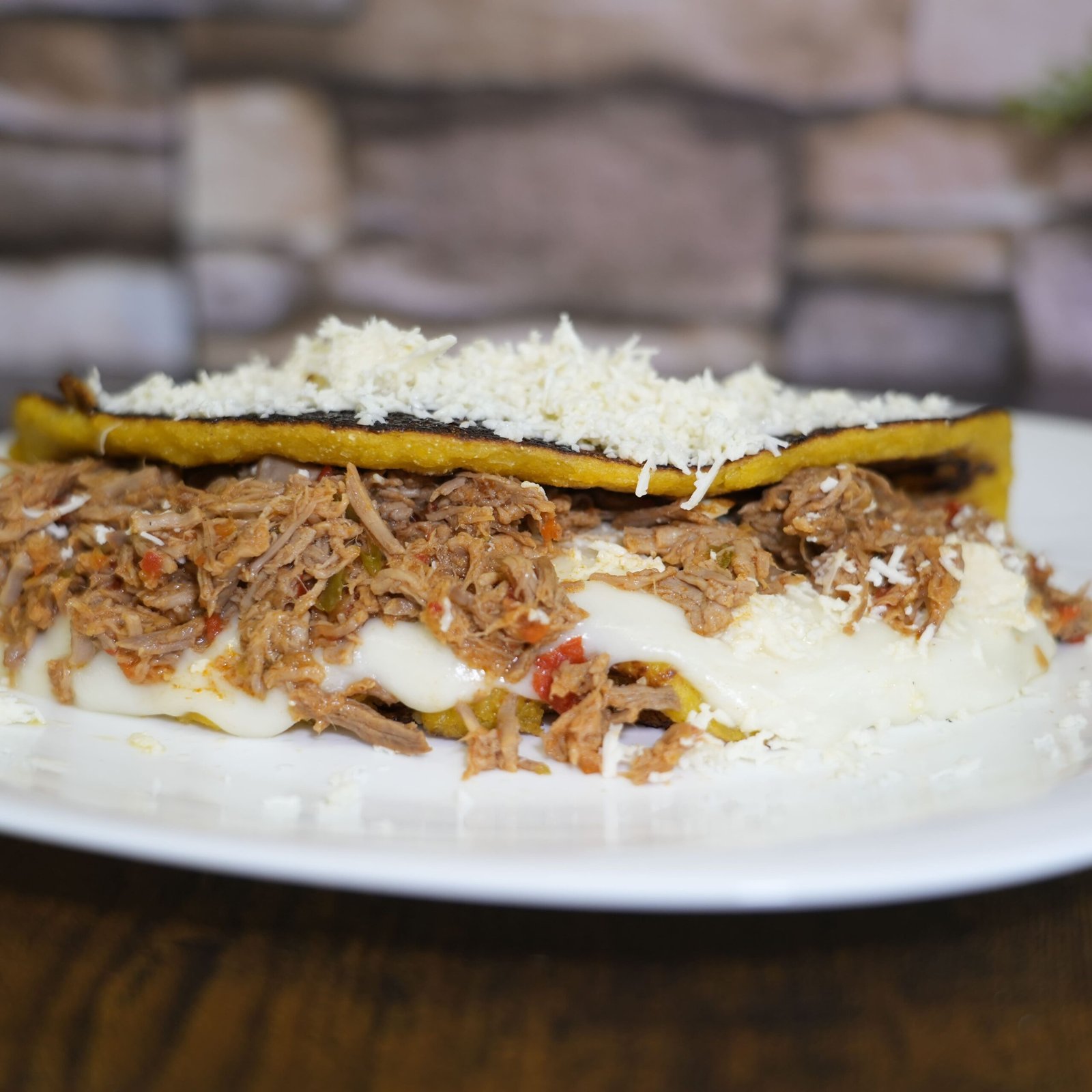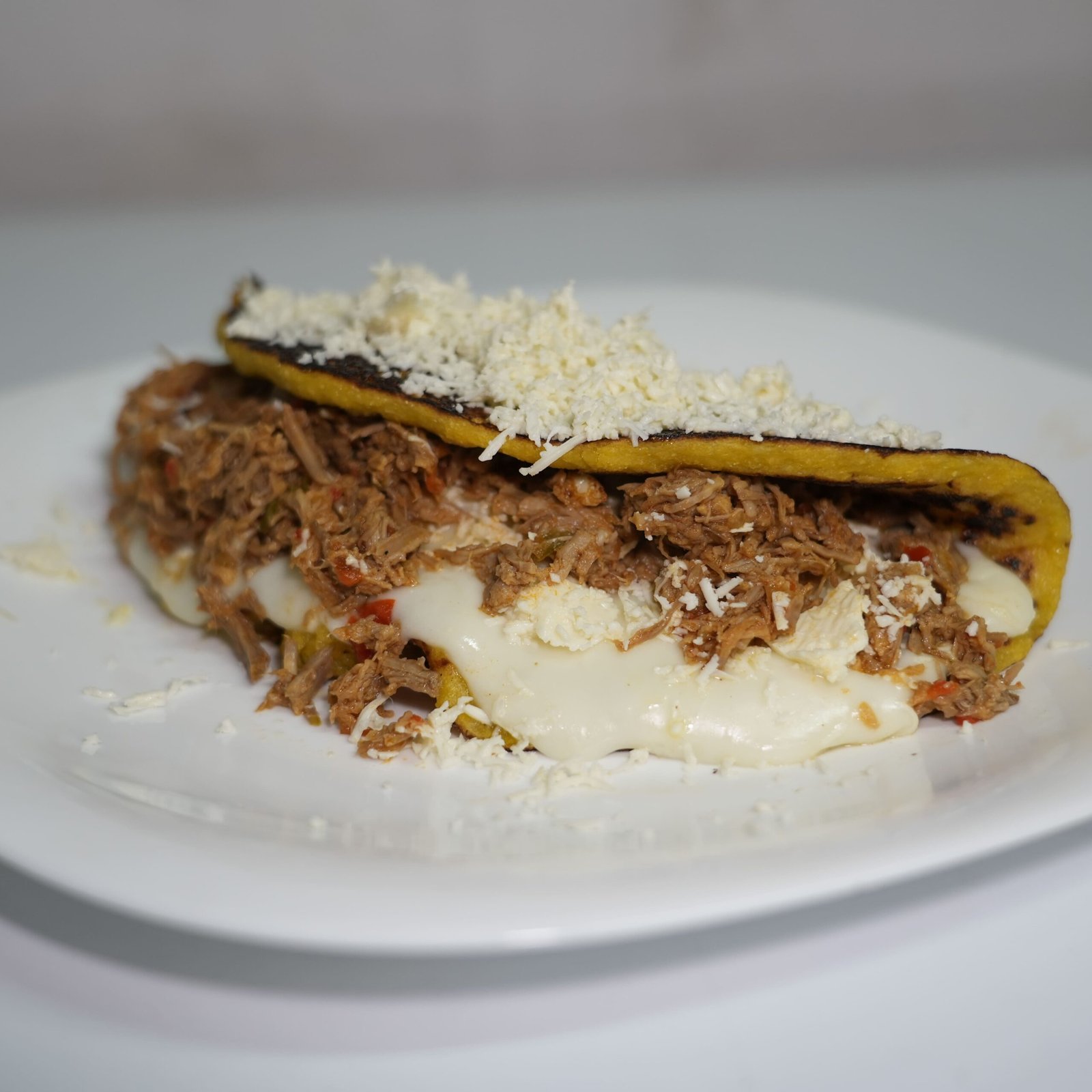 CARNE MECHADA CON QUESO DE MANO Y QUESO LLANERO, QUESO DE MANO Y QUESO LLANERO ACOMPAÑADA CON COCHINO FRITO, QUESO DE MANO Y QUESO LLANERO, QUESO LLANERO