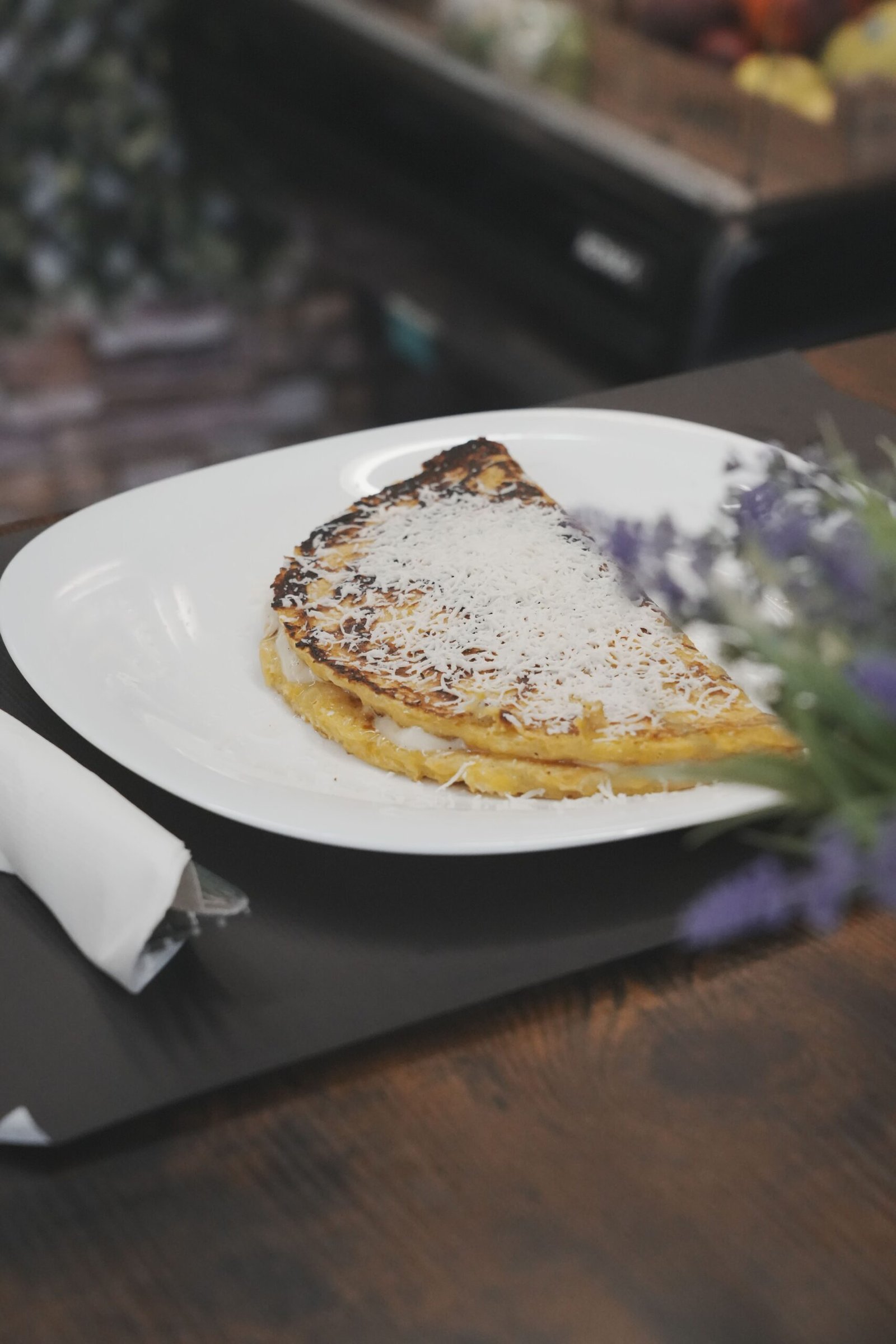 TORTILLA TIPO CRESP HECHA A BASE DE MAIZ TIERNO RELLENA DE QUESO DE MANO Y QUESO LLANERO Y DIFERENTES TIPOS DE GUARNICIÓN COMO CARNE MECHADA O COCHINO O REINA PEPEADA